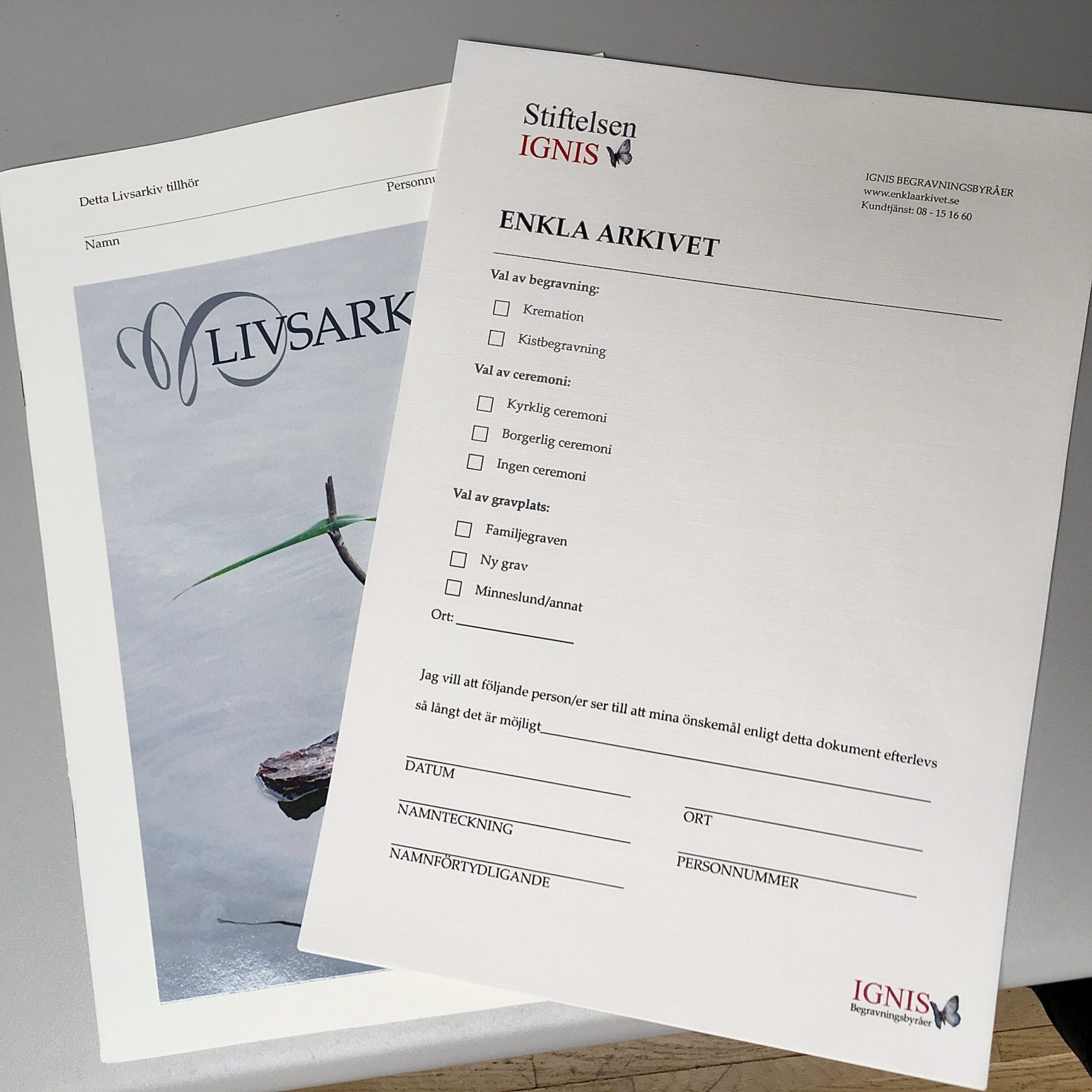 • Önskemål och datum och plats för begravningsceremonin.