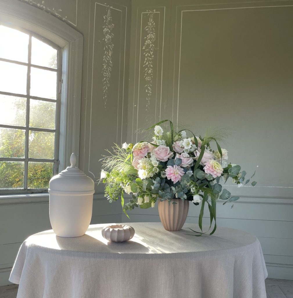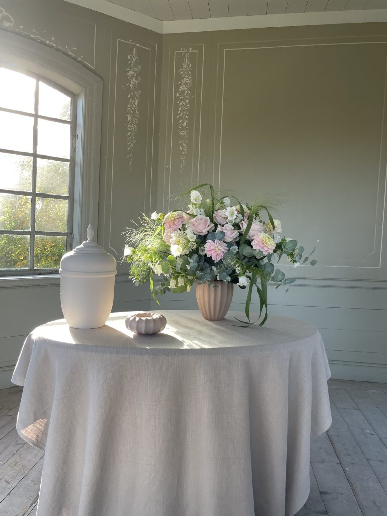 Vi erbjuder en helt ny kollektion där en vacker bukett i keramikvas kan kombineras med en matchande ljuslykta. Keramiken är handgjord av Paradisverkstaden på Öland. Vi har valt milda färger i fin harmoni med våra handmålade och unika urnor. Vasen och ljuslyktan blir sedan ett fint minne att ta med hem.