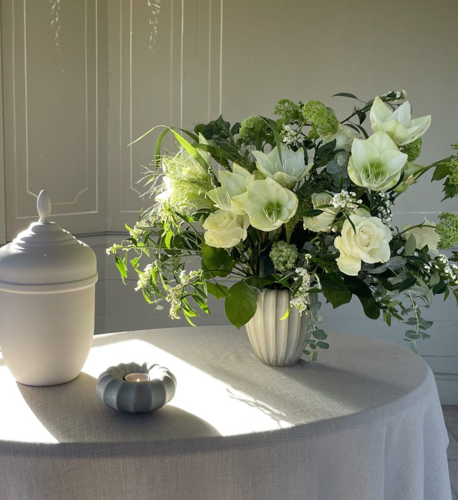 Vi erbjuder en helt ny kollektion där en vacker bukett i keramikvas kan kombineras med en matchande ljuslykta. Keramiken är handgjord av Paradisverkstaden på Öland. Vi har valt milda färger i fin harmoni med våra handmålade och unika urnor. Vasen och ljuslyktan blir sedan ett fint minne att ta med hem.